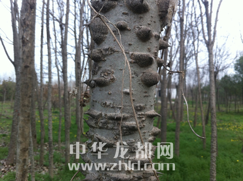 ????從高臺(tái)上走下,記者繼續(xù)行走在紅花綠樹(shù)之間,一棵渾身長(zhǎng)滿尖刺的大樹(shù)吸引了記者的目光。只見(jiàn)該樹(shù)有碗口粗細(xì),全身長(zhǎng)滿了長(zhǎng)刺,如果有人不小心碰到樹(shù)干,非得扎出血來(lái)不可?!八拿纸小涕薄?,是我國(guó)稀有樹(shù)種之一,十分罕見(jiàn)!”常年在森林公園看護(hù)樹(shù)木的馬松濤介紹,“夏天時(shí),刺楸樹(shù)上的每個(gè)刺旁邊都會(huì)長(zhǎng)出一片綠色的葉子,從遠(yuǎn)處看,整個(gè)樹(shù)干被樹(shù)葉包裹得嚴(yán)嚴(yán)實(shí)實(shí)。”
