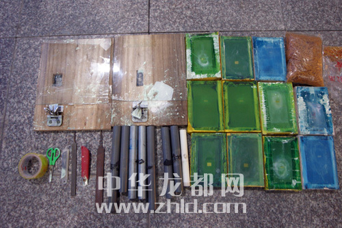 ????同年11月5日,在獲知許某、韓某夫婦再次從廣東購(gòu)得假幣,并已伙同孟某完成防偽加工工序的準(zhǔn)確信息后,為避免假幣流入市場(chǎng),周口公安機(jī)關(guān)經(jīng)偵部門“收網(wǎng)”。11月6日,市公安局犯罪偵查支隊(duì)經(jīng)偵三個(gè)大隊(duì)全體民警在文昌分局許灣中隊(duì)、沈丘縣公安局經(jīng)偵大隊(duì)的協(xié)同配合下,直撲犯罪窩點(diǎn)。于當(dāng)天下午2時(shí)許,在沈丘縣抓獲犯罪嫌疑人韓某、孟某及其他涉案人員,并在孟某家中當(dāng)場(chǎng)繳獲假幣數(shù)百萬(wàn)元(圖一),假人民幣加工模具12套(圖二)。