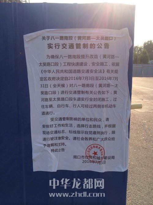 ????當(dāng)日下午,周口晚報(bào)記者在八一大道南段看到,原火車站鐵道口至太昊路路段的雙向機(jī)動(dòng)車道已全線封閉,“過往車輛請(qǐng)繞行”的交通警示牌也已豎立在路口,幾輛施工車輛正在現(xiàn)場緊張忙碌地備料、開挖路面。