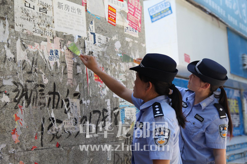 ????為深入推進(jìn)創(chuàng)建省級文明城市工作,周口市公安局荷花分局民警走上街頭,逐一鏟除張貼在墻上、電線桿、商鋪門口等地方的小廣告。