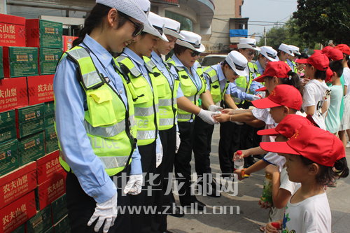????當(dāng)前,創(chuàng)建省級文明城市工作正在周口中心城區(qū)廣泛開展,整個城市越來越干凈美麗,城市文明程度不斷提升。8月15日上午,在八一大道和七一路交叉口,團(tuán)市委組織數(shù)十名志愿者和孩子協(xié)助交警維護(hù)交通秩序??吹浇痪⒁虩岬煤沽鳑驯常⒆觽兗娂妼⒌V泉水送到她們手中。晚報記者 王凱 攝