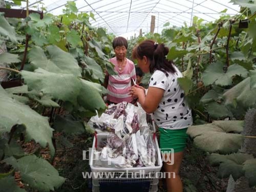 ????在農(nóng)場(chǎng)的葡萄大棚里,一串串葡萄被套上了塑料袋,形成了五顏六色的奇特景觀,社員正忙著采摘裝箱(如圖)。農(nóng)場(chǎng)技術(shù)人員介紹:“給葡萄套袋,可以明顯改善果實(shí)品質(zhì),保護(hù)果實(shí)不受病蟲害侵襲,減少農(nóng)藥殘留,防鳥啄食,改善果實(shí)外觀,提高果品檔次,是當(dāng)前生產(chǎn)高品質(zhì)、無(wú)公害葡萄的有效措施?!?/p>