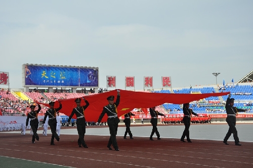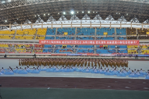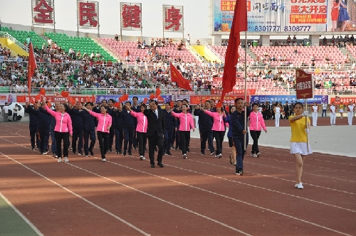 ????當(dāng)日16時(shí),國旗方陣、會旗方陣、彩旗隊(duì)、裁判員、運(yùn)動員依次入場,一個(gè)個(gè)意氣風(fēng)發(fā)的團(tuán)隊(duì)引來現(xiàn)場觀眾陣陣掌聲和歡呼聲:周口川匯區(qū)代表團(tuán)首先入場,他們步伐矯健,英姿勃發(fā);市委辦公室代表團(tuán)精神抖擻,意氣風(fēng)發(fā);市委宣傳部代表團(tuán)邁著矯健的步伐走向主席臺……