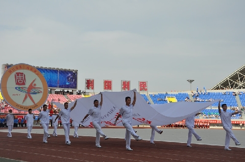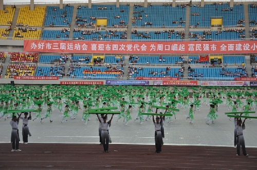 ????大型體育展示表演開始了,《印象周口》氣勢磅礴,來自周口幼兒師范學(xué)校和周口科技職業(yè)學(xué)院、沈丘縣教體局等單位的演員們披著鮮明的旗幟,激情奔跑在寬闊的體育場上,迎風(fēng)飄揚(yáng)的旗幟讓整個(gè)會場變成了藍(lán)色海洋;周口職業(yè)技術(shù)學(xué)院衛(wèi)生學(xué)院與周口文昌中學(xué)的朗誦表演《荷韻悠長》吟誦豪邁,響徹會場;周口市自行車協(xié)會聯(lián)合川匯區(qū)、淮陽縣、太康縣等多個(gè)教體育一起表演的《崛起之路》更是體現(xiàn)了周口正在實(shí)現(xiàn)中國夢的征途上迅速崛起,書寫著新的精彩篇章……
