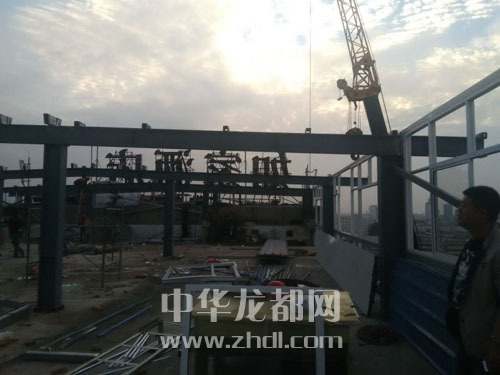 ????“今年4月份,我們在巡查時,發(fā)現(xiàn)該處樓頂存在加建現(xiàn)象,隨即找到違建業(yè)主,對方不僅始終閉門不見,還在拒絕辦事處人員進(jìn)入現(xiàn)場的同時,利用夜間加班加點(diǎn)突擊建設(shè),目前加建的兩層主體建筑已接近尾聲,耗資近100萬元?!标愔蒉k事處城管中隊負(fù)責(zé)人韓亞輝介紹。拆違當(dāng)日,周口晚報記者在現(xiàn)場看到,這處違章建筑位于中心城區(qū)八一大道與交通大道交叉口西南角原天鵝商廈七樓樓頂,建筑主體為鋼結(jié)構(gòu),中間夾雜著混凝土結(jié)構(gòu)。由于該樓臨路墻體被大型戶外樓體廣告遮擋,這處違章建筑顯得十分隱蔽?!敖鼉蓚€月來,盡管我們多次下發(fā)自行拆除告知書,但由于對方投資巨大,違建當(dāng)事人很不配合。經(jīng)過川匯區(qū)、陳州辦事處及社區(qū)工作人員多次上門宣傳勸說,違建當(dāng)事人最終妥協(xié),表示愿意配合辦事處予以拆除。”