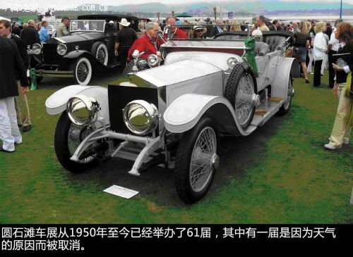 ??? 第二次的圓石灘車展是在1951年5月27日舉辦,當(dāng)時(shí)只有23輛車參展。接下來幾十年中,除了1960年,因?yàn)樘鞖鈵毫拥脑蛉∠囌梗灰约?963到1965年間長期大雨磅礴導(dǎo)致了參展草地?fù)p壞不可用,車展地點(diǎn)出現(xiàn)一些變動外,圓石灘車展一直舉辦的都非常順利,并且由于其參展車型都是價(jià)值連城的古董老爺車及未來的概念車,所以它還獲得了“全球最豪華的汽車展”稱號。