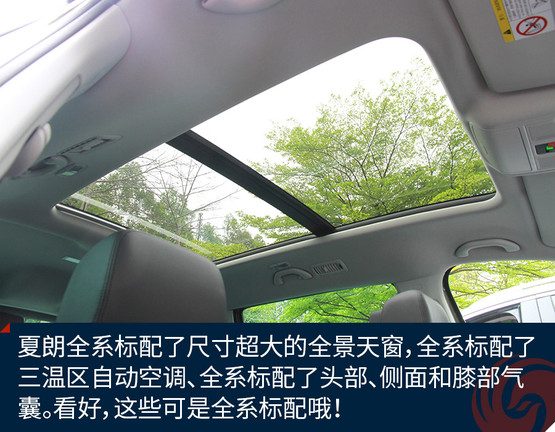 在配置方面,夏朗6座版也確實有值得稱道的地方,比如夏朗全系標配了尺寸超大的全景天窗,全系標配了三溫區(qū)自動空調、全系標配了頭部、側面和膝部氣囊??春?,這些可是全系標配哦!