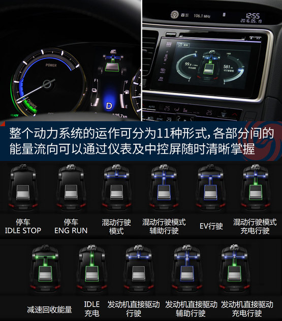 儀表也需要重新設(shè)計(jì),左側(cè)的轉(zhuǎn)速表變成了動力顯示表。不過這跟雷克薩斯采用的液晶顯示方式不同,實(shí)體儀表只能固定在動力顯示的樣子,愛駕駛的人習(xí)慣看的轉(zhuǎn)速表就沒法兼得了。此外,儀表液晶屏和中控大屏都提供了能流量顯示功能,方便駕駛者隨時(shí)了解車輛能量的流動情況,也是個突顯逼格的利器。
