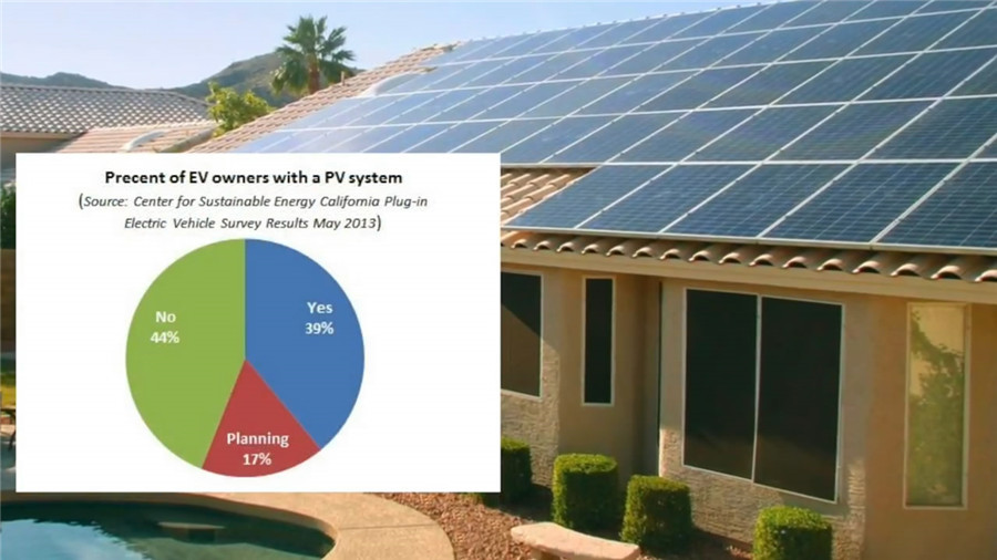 ????????一直以來爭議的問題,盡管電動車在行駛時確實沒有排放,但電能本身是二次能源,生產(chǎn)電能的過程中同樣會產(chǎn)生排放,而且這排放比起生產(chǎn)汽油更嚴重。視頻中給出了另一個數(shù)據(jù),加利福尼亞使用電動車或者插電式混合動力車的用戶中,家里有太陽能發(fā)電以及類似清潔能源系統(tǒng)的占到了39%的比例,而還有17%的用戶有計劃安裝類似發(fā)電系統(tǒng)。