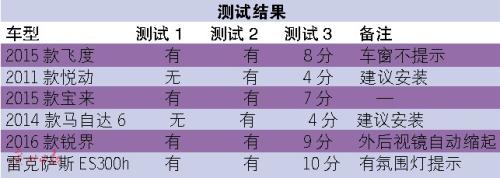 ????當(dāng)然也有意外,測(cè)試中的一款2011年的悅動(dòng)和馬自達(dá)6竟然沒有鎖車音響。部分車型如寶來,在車門關(guān)閉異常時(shí),也會(huì)發(fā)出正常的鎖車音,但聲音會(huì)不如平時(shí)悅耳。