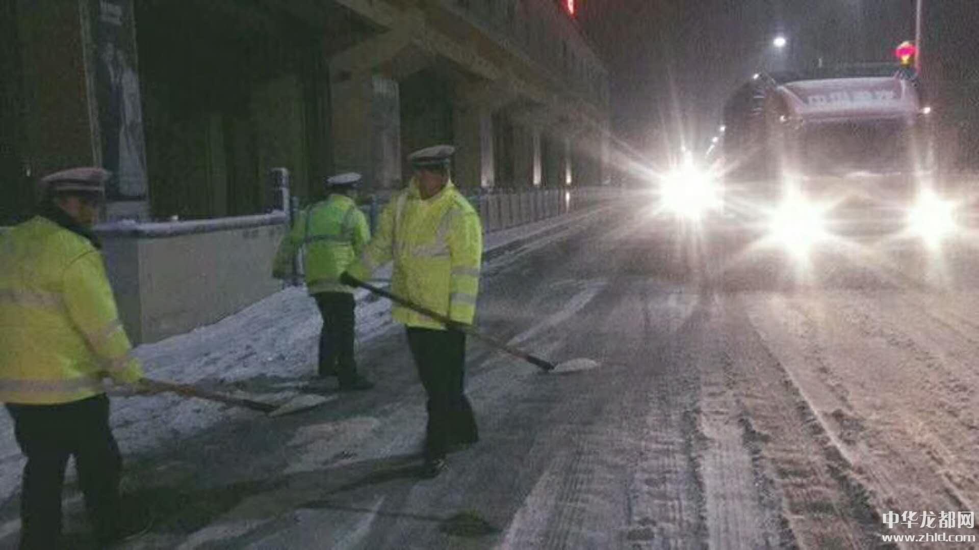 中華龍都網(wǎng)訊(周口報業(yè)全媒體記者  韋偉  通訊員  王佳佳 )“加派警力到各個橋梁涵洞,持續(xù)清掃路面,防止結(jié)冰!”1月4日下午六點,沈丘縣城仍是白雪飄飛,天還沒黑,一道加急令,讓忙碌了一天一夜的交警們打起了十二分的精神,繼續(xù)全員上路,不停不歇地進行掃雪及撒鹽除冰工作。