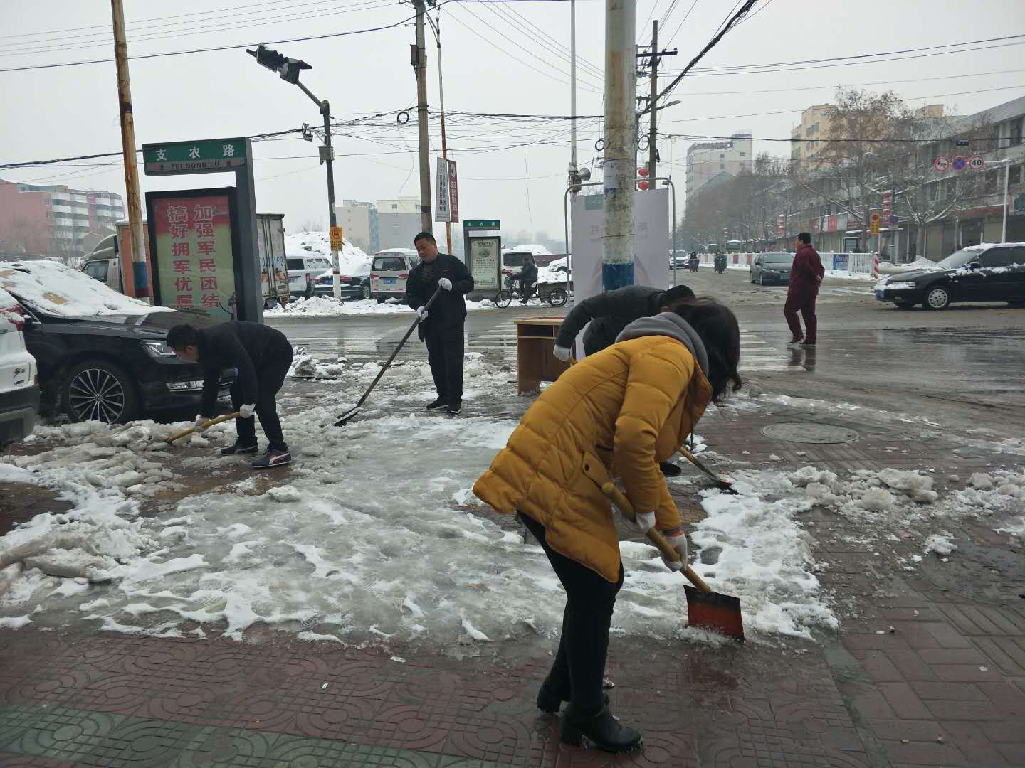一呼百應(yīng)。該縣縣直各單位、新城、洺南、洺北辦事處,城郊鄉(xiāng)、工業(yè)區(qū)接到通知后,立組織機(jī)關(guān)企事業(yè)單位干部職工上街掃雪、鏟雪,做到本單位出入口、文明城創(chuàng)建責(zé)任區(qū)路面基本無積冰、殘雪。各辦事處發(fā)揮屬地管理作用,重點(diǎn)發(fā)動新華路、迎賓大道、世紀(jì)大道、人民路、育新路、文化路、交通路、科技大道等沿街單位及商戶主動落實(shí)“門前三包”,清掃人行道積雪。城管部門從1月5日開始一直未停歇,前兩天雖然雪花飄舞,他們冒雪出動大型車輛、組織專業(yè)隊(duì)伍,最大程度的保障了主次干道無積雪、通行順暢。今日,縣城管局按照縣委、縣政府的指示精神,正夜以繼日加大城區(qū)主路行車道路面的清掃力度。在清掃的同時,出動各種運(yùn)輸車輛,協(xié)助各單位及時把中心城區(qū)冰雪清運(yùn)、規(guī)范堆放,確保行人和車輛正常安全通行。