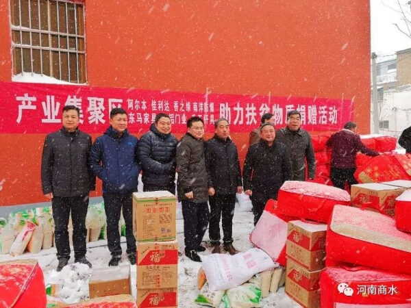 “我們將一如既往地關(guān)注和支持精準(zhǔn)扶貧工作,用實(shí)際行動(dòng)展現(xiàn)企業(yè)家致富不忘本、積極履行社會(huì)責(zé)任的良好形象?!?月4日上午,河南阿爾本制衣有限公司等企業(yè)負(fù)責(zé)人深入到張莊鄉(xiāng)大姜樓、雙廟、李寨、河灣等村的困難戶家中,為他們送去慰問(wèn)金以及米面糧油、棉被等過(guò)冬物質(zhì)。大雪來(lái)臨之后,全縣越來(lái)越多的企業(yè)加入到脫貧攻堅(jiān)送溫暖活動(dòng)中來(lái),周口市佳利達(dá)紡織有限公司、河南香之緣農(nóng)業(yè)發(fā)展有限公司、河南省南洋防爆電機(jī)有限公司、河南東馬家居有限公司、河南豪鋁門業(yè)有限公司、河南千王釬具有限責(zé)任公司等更是體現(xiàn)出大愛(ài)無(wú)邊的擔(dān)當(dāng)意識(shí)、責(zé)任意識(shí),用實(shí)際行動(dòng)為貧困家庭送去一股股暖流。 風(fēng)雪阻擋不住商水脫貧攻堅(jiān)的決心和腳步。據(jù)不完全統(tǒng)計(jì),元旦以來(lái),商水縣有3000多名縣鄉(xiāng)干部、駐村隊(duì)員、愛(ài)心企業(yè)家參與到扶貧攻堅(jiān)送溫暖活動(dòng)中來(lái)。新一輪的“大慰問(wèn)、大宣傳、大落實(shí)”活動(dòng)正在展來(lái),更多的貧困家庭將切實(shí)感受到黨和政府的溫暖。