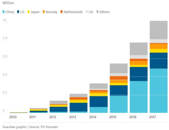 按照上述趨勢(shì),如果2018年電動(dòng)汽車(chē)銷(xiāo)量將達(dá)到170萬(wàn)到200萬(wàn)輛,到2018年年底全球的保有量將有望超過(guò)500萬(wàn)。