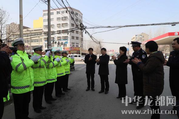 一路慰問一路播撒黨的溫暖。在鄲城縣城科技大道與人民路口,趙素萍一行專門下車慰問了一線交警?!袄洳焕洌啃』镒?。這衣服暖和不?”趙素萍用手摸了摸一位交警的值勤服問?!安焕?,這是俺縣里才配發(fā)的保暖服,防雪防風防雨。再說了,省領(lǐng)導來慰問,俺心里更暖和?!苯痪臋C靈回答,把大家逗得哈哈大笑。趙素萍說:“你們不畏嚴寒的辛勤付出保障了城市的暢通,我代表省委、省政府向全縣民警同志們致以節(jié)日的問候,并通過你們向你們的家人表示節(jié)日的祝福,祝愿大家新春愉快,闔家幸福,身體健康。”