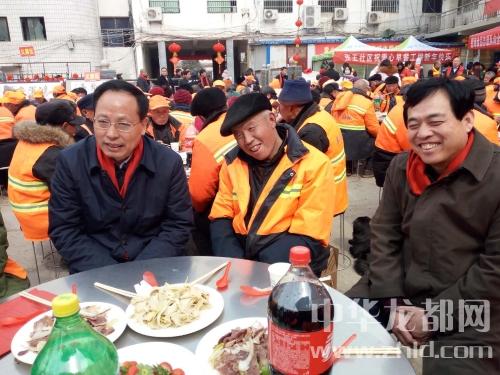 中華龍都網(wǎng)訊(周口報(bào)業(yè)全媒體記者 馬治衛(wèi))2月14日上午,太康縣“溫暖環(huán)衛(wèi)工團(tuán)團(tuán)圓圓過(guò)大年”大型公益活動(dòng)隆重舉行。市政府副市長(zhǎng)、市黨外知識(shí)分子聯(lián)誼會(huì)會(huì)長(zhǎng)張廣東應(yīng)邀出席并與環(huán)衛(wèi)工一起共進(jìn)午餐。