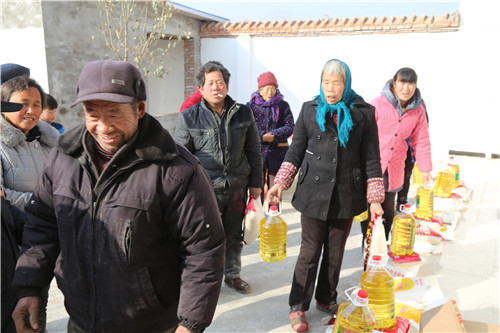 當(dāng)日上午,雖然天氣寒冷,可葉莊行政村村室院里卻暖意融融。該村村主任熊茂禮正在把備好的年貨發(fā)放到49戶村民的手中。“非常感謝茂禮這么遠(yuǎn)回老家看望我們這些困難戶,讓我們過(guò)上一個(gè)好年?!爆F(xiàn)年76歲的村民張多朗是個(gè)五保戶,接過(guò)熊茂禮送上的年貨連聲道謝。熊茂禮鼓勵(lì)困難戶一定要對(duì)生活充滿信心,樂(lè)觀地面對(duì)生活。同時(shí),希望困難戶要保持良好心態(tài),積極面對(duì)困難,自強(qiáng)自立,早日擺脫困境。