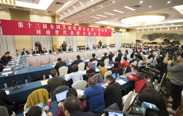3月6日,十三屆全國(guó)人大一次會(huì)議河南代表團(tuán)全體會(huì)議向媒體開(kāi)放。