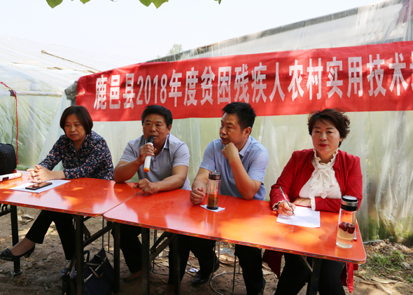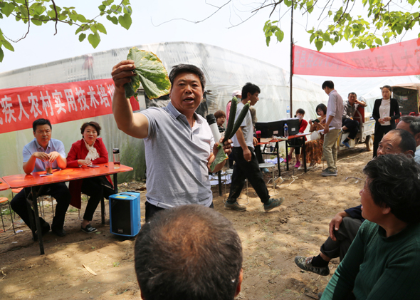 5月10日,在鹿邑縣馬鋪鎮(zhèn)完樓村殘疾人士付天軍的培訓(xùn)基地——蔬菜種植合作社助殘大棚內(nèi),來(lái)自鹿邑縣馬鋪鎮(zhèn)、渦北鎮(zhèn)產(chǎn)業(yè)集聚區(qū)的150多名建檔立卡貧困殘疾人,齊聚這里免費(fèi)學(xué)習(xí)黃瓜種植技術(shù),付天軍在大棚內(nèi)手把手地進(jìn)行指導(dǎo),來(lái)自華陽(yáng)學(xué)校的農(nóng)業(yè)專家李中蘭也應(yīng)邀在大棚內(nèi)對(duì)常見的病蟲害進(jìn)行詳細(xì)講解。