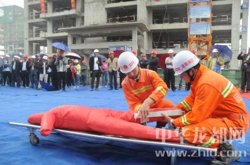 中華龍都網(wǎng)訊(周口報業(yè)全媒體記者 朱海龍)5月11日上午,在商水縣建業(yè)城項目施工工地,商水縣舉辦建筑施工現(xiàn)場應(yīng)急救援演練,200多人冒雨觀摩現(xiàn)場演練。