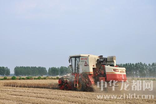 中華龍都網(wǎng)訊(周口報(bào)業(yè)全媒體記者 付永奇 通訊員 張長河)6月1日上午,在商水縣化河鄉(xiāng),20多臺(tái)大型康麥因馳騁在千畝金黃色的麥田里,助力如火如荼的全縣麥?zhǔn)沾髸?huì)戰(zhàn)。