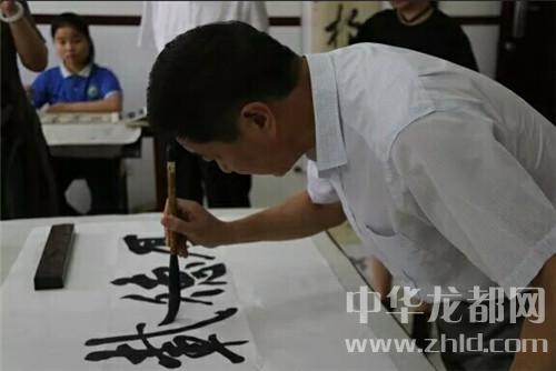 當日上午9時許,文昌中學文昌書院里洋溢著熱烈的氣氛,筆會活動在此展開。原周口市委黨校校長張?zhí)炫d第一個閃亮登場,只見他筆走龍蛇,一氣呵成,瞬間功夫,“公生明,廉生威”6個大字在他的筆下愈發(fā)顯得遒勁有力。緊接著,原周口市城市管理局局長李輝、原周口市政府副秘書長張志全等10余位書畫家輪番上陣,揮毫潑墨,一上午時間,30余幅精彩的作品在他們筆下誕生。