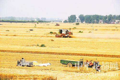現(xiàn)在我市麥?zhǔn)找呀猜暋J斋@時(shí),縱橫交錯(cuò)的麥田一片金黃,把鄉(xiāng)村裝點(diǎn)得格外美麗。收割機(jī)在麥田中穿梭,陣風(fēng)吹過(guò),麥浪隨風(fēng)起舞,猶如一幅田園畫(huà)卷。呂耀光 攝