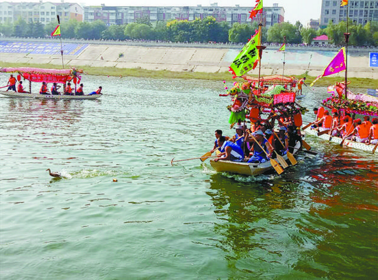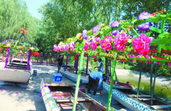 據(jù)了解,周口翎船有著100多年的歷史,翎船因其身較短,平頭柳葉形,輕捷靈便,獨(dú)具特色,加上每個翎船不惜重彩“打扮”,裝飾各有差異,有別于南方的龍舟。記者 張志新 攝
