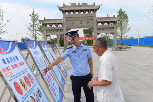 在弘道苑廣場(chǎng)的宣傳現(xiàn)場(chǎng),縣委常委、政法委書記侯自峰觀看了禁毒宣傳展板,還不時(shí)地給過(guò)往群眾交流,為他們講解“健康人生綠色無(wú)毒”的重要性,讓廣大人民群眾要提高識(shí)毒、防毒、拒毒意識(shí),積極參與禁毒工作。