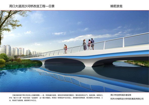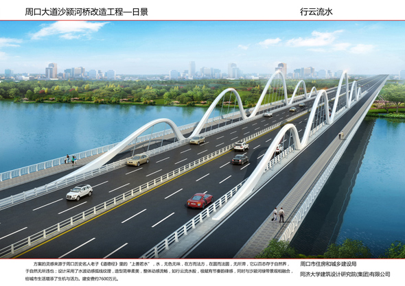 今后一個時期,結(jié)合水系的綜合治理,我市還將陸續(xù)開工建設(shè)數(shù)十座橋梁,并且秉承一橋一風(fēng)格的設(shè)計特色,展示出每座橋梁的文化內(nèi)涵,通過幾年的努力,把周口中心城區(qū)打造成百座橋梁薈萃、風(fēng)格各異、特色鮮明的橋梁博物館。