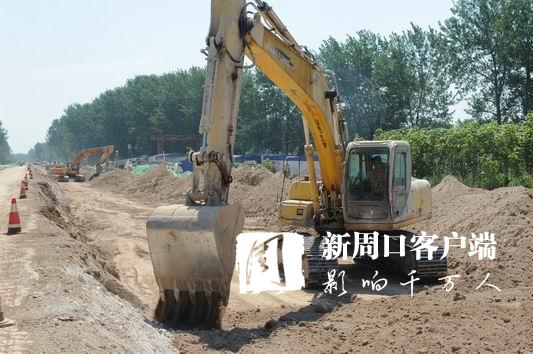 當(dāng)日9時(shí)許,記者來到施工現(xiàn)場(chǎng),感受到的不僅是天氣的炎熱,更感受到了工人們爭(zhēng)分奪秒趕進(jìn)度的熱情以及施工現(xiàn)場(chǎng)緊鑼密鼓推項(xiàng)目的熱潮。施工現(xiàn)場(chǎng)19臺(tái)挖掘機(jī)、5臺(tái)壓路機(jī),2臺(tái)灰土拌和機(jī)以及數(shù)臺(tái)渣土車、裝載機(jī)齊齊上陣,10臺(tái)灑水車在路面中間來回穿梭,整個(gè)現(xiàn)場(chǎng)機(jī)械轟鳴,緊張有序,呈現(xiàn)出一派熱火朝天的景象。