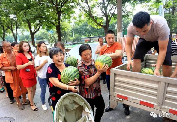 鄭州市民排著長(zhǎng)長(zhǎng)的隊(duì)伍領(lǐng)取免費(fèi)愛(ài)心西瓜,來(lái)自咱扶溝的宋鐵托做了一件感動(dòng)家鄉(xiāng)人小事,而這件小事卻上了《人民日?qǐng)?bào)》。