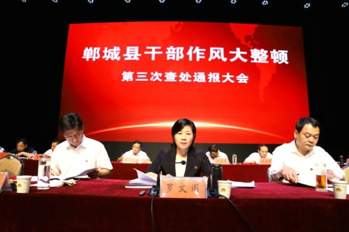 8月15日下午,鄲城縣召開(kāi)干部作風(fēng)大整頓第三次查處通報(bào)大會(huì)。貫徹全市干部作風(fēng)大整頓查處通報(bào)會(huì)議精神和縣委十二屆四次全會(huì)暨縣委工作會(huì)議精神,通報(bào)典型案例,宣布處理決定,傳導(dǎo)工作壓力,夯實(shí)工作責(zé)任,為進(jìn)一步推進(jìn)各項(xiàng)工作任務(wù)落實(shí)、打好打贏脫貧攻堅(jiān)戰(zhàn)提供堅(jiān)強(qiáng)有力的作風(fēng)保障??h委書(shū)記羅文閣發(fā)表講話,縣長(zhǎng)李全林主持。全縣副處級(jí)以上領(lǐng)導(dǎo)干部和縣、鄉(xiāng)、村各級(jí)各部門負(fù)責(zé)人參會(huì)。