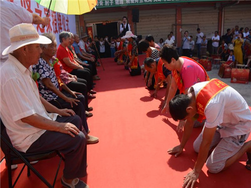鄉(xiāng)長吳國鋒發(fā)表了熱情洋溢的致辭。他首先代表平店鄉(xiāng)黨委、政府、人大向受到表彰的先進(jìn)模范和先進(jìn)家庭表示熱烈的祝賀并致以崇高的敬意。并詳細(xì)闡述了開展“孝善敬老讓愛回家、孝賢之星表彰授牌暨解決獨(dú)居老年人問題、助力脫貧攻堅(jiān)的重大意義,他希望受到表彰的先進(jìn)代表和家庭要珍惜榮譽(yù)、再接再厲,繼續(xù)弘揚(yáng)尊老、敬老、養(yǎng)老、愛老的傳統(tǒng)美德,推動全鄉(xiāng)“孝善敬老”文化不斷邁向新臺階?;顒蝇F(xiàn)場宣讀了《平店鄉(xiāng)人民政府敦促將被贍養(yǎng)人接入安全住房共同生活的通告》;與會領(lǐng)導(dǎo)為孝賢之家頒獎授牌;28個“孝子孝媳”在臺上統(tǒng)一施行叩拜大禮;活動結(jié)束后,鄉(xiāng)政府指派3名班子領(lǐng)導(dǎo)和10多名工作人員,分別乘坐6臺輛,由嗩吶隊(duì)開路,風(fēng)風(fēng)光光把28個老人送回了家。一路引來不少群眾駐足注目觀看,廣大群眾對此嘖嘖稱贊、拍手稱快。