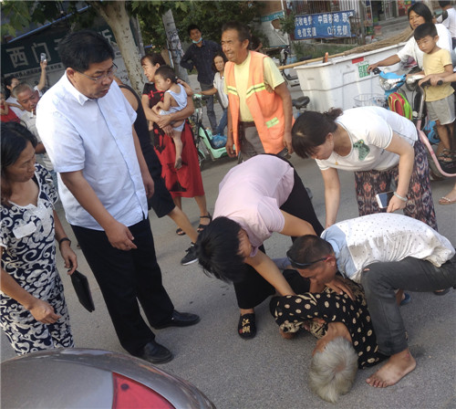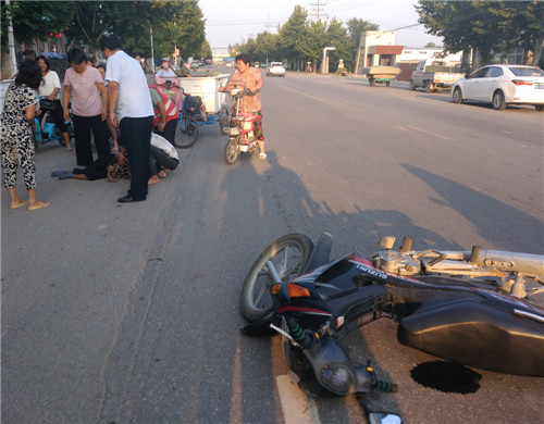 當日6時許,趙紅建在寧平鎮(zhèn)扶貧返回縣城行駛至金丹大道工業(yè)區(qū)段時,發(fā)現一輛摩托車倒在馬路中間,一位老人躺臥車邊,目測老人胳膊、腿部傷情較重。