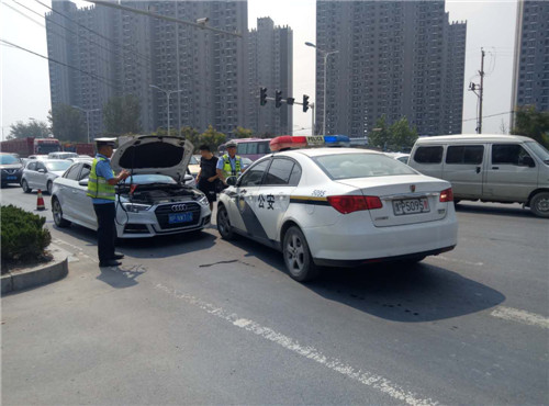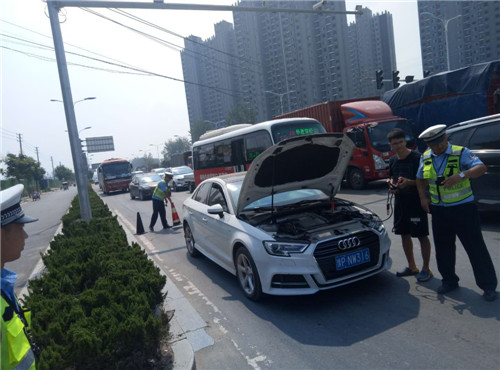 8月26日中午11點,周口港區(qū)公安分局民警發(fā)現(xiàn),一輛私家車行經(jīng)周項路周口港區(qū)路段時,發(fā)生故障停在快車道,影響道路暢通。港區(qū)交警部門負責人姜亞偉上前了解情況,得知汽車電瓶出現(xiàn)故障,無法正常發(fā)動。于是姜亞偉將警車開到私家車旁,用汽車電瓶連接線將警車電池與私家車鏈接,幫助車主啟動汽車,迅速恢復道路交通秩序。