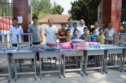 8月27日上午11時(shí)許,商水縣平店鄉(xiāng)大朱莊村小學(xué)大 門(mén)外,突然停放一輛廂式貨車(chē)??吹接袉挝凰蛠?lái)了“開(kāi)學(xué)禮”,學(xué)校老師和學(xué)生滿臉興奮 、七手八腳和來(lái)人一塊卸下一些嶄新的課桌凳、書(shū)包文具等學(xué)習(xí)辦公用品。