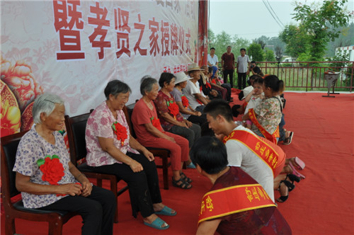 大會開始之前,來自該鄉(xiāng)20個(gè)行政村的廣場舞代表隊(duì)、戲曲代表隊(duì)、嗩吶代表隊(duì)先后出場,訾秀玲一曲《黃土高坡》贏得全場觀眾雷鳴般掌聲。緊接著,好兒子、好媳婦代表上臺為自己的父母磕了3個(gè)響頭,以表達(dá)對父母養(yǎng)育之恩的感激之情,老人們臉上流露出激動和幸福的淚水,現(xiàn)場掌聲經(jīng)久不息??h領(lǐng)導(dǎo)在主席臺上為36個(gè)孝賢之家授牌,并向獲獎?wù)弑硎咀YR。據(jù)介紹,該鄉(xiāng)自開展孝善敬老接老人回家活動以來,已有200多名獨(dú)居老人被兒子、媳婦接回家居住。為了表彰接老人回家的好兒子、好媳婦和孝賢之家,該鄉(xiāng)組織、策劃了這次大型活動。