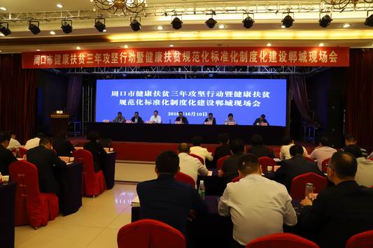 10月10日,全市健康扶貧三年攻堅暨健康扶貧規(guī)范化標(biāo)準(zhǔn)化制度化建設(shè)現(xiàn)場會在鄲城縣召開。會議總結(jié)成績,交流經(jīng)驗(yàn),安排部署我市健康扶貧三年攻堅工作任務(wù),加快推進(jìn)健康扶貧規(guī)范化標(biāo)準(zhǔn)化制度化建設(shè),為我市貧困人口如期脫貧提供健康保障。副市長張廣東、市政府副秘書長劉濤、市衛(wèi)計委主任劉炯、縣委書記羅文閣、縣人大常委會副主任張愛聯(lián)、副縣長肖煒、縣政協(xié)副主席崔家龍參加會議。