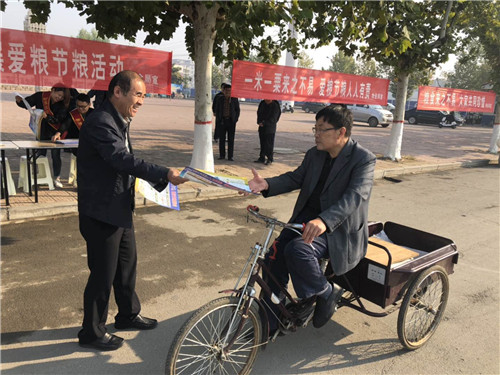 各鄉(xiāng)鎮(zhèn)糧油公司同步開展宣傳活動,設(shè)立分會場宣傳臺,懸掛宣傳標語,并組織職工到人員密集處向群眾講解國家糧食政策、糧食收購質(zhì)價標準、糧油市場信息等,讓廣大群眾了解了糧食生產(chǎn)、收獲、運輸、保管等方面的科技知識,增強了群眾的節(jié)糧減損意識。