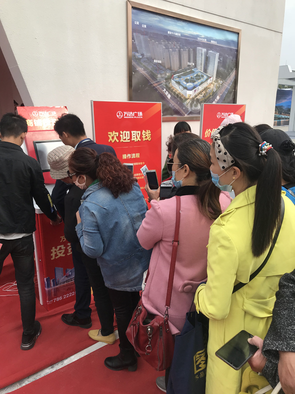 房展會期間,一些市民紛紛到萬達(dá)廣場展廳體驗“投資”快感。
