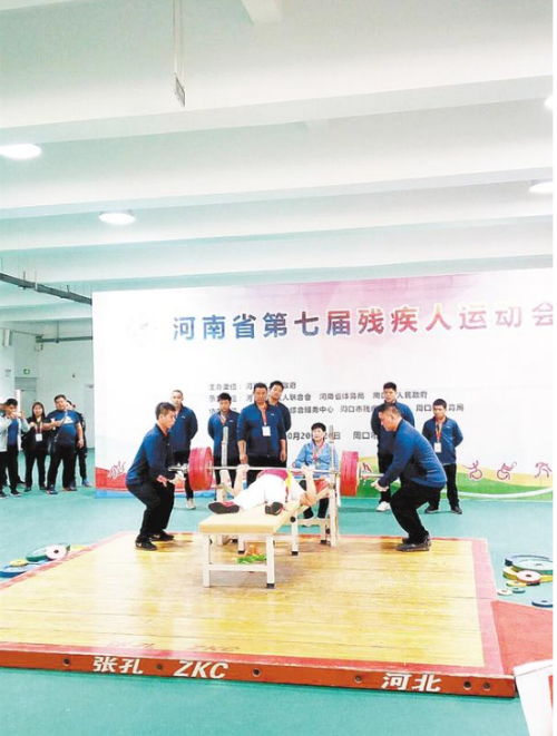10月24日下午,在河南省第七屆殘疾人運(yùn)動會男子舉重65公斤級比賽中,南陽選手范天增以185公斤的成績強(qiáng)勢奪冠,遠(yuǎn)高于第二名信陽選手湯孝虎95公斤的成績。②8記者 張志新 攝