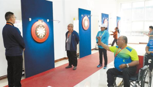 10月24日下午,河南省第七屆殘疾人運(yùn)動會飛鏢項(xiàng)目坐姿組比賽在市體育中心老年館進(jìn)行。參賽選手在認(rèn)真比賽的同時,也會在比賽間隙放松心情,相互分享各自的心得,享受比賽的過程。②8 記者 牛思光 攝