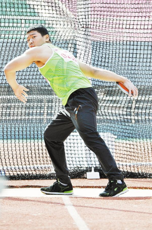 10月24日上午,河南省第七屆殘疾人運(yùn)動會田徑項(xiàng)目中的擲鐵餅比賽正進(jìn)行得如火如荼。圓圓的鐵餅從運(yùn)動員的手中拋出,劃過美麗的天空,落在草地上。該項(xiàng)運(yùn)動展示了運(yùn)動員陽剛、拼搏的一面。圖為比賽現(xiàn)場。②8 記者 梁照曾 攝