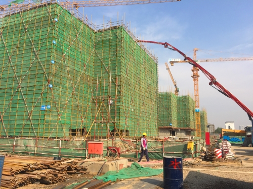 據(jù)該項(xiàng)目副總經(jīng)理王志強(qiáng)介紹,目前該項(xiàng)目南地塊基坑支護(hù)主體已經(jīng)完成,正在進(jìn)行土方的開挖,已出土約20萬立方米,完成總出土量的50%,地下室底板抗浮錨桿完成30%。中區(qū)地塊共13棟住宅,其中2棟已施工至主體7層,2棟施工至主體5層,其余9棟正在進(jìn)行正負(fù)零以下主體施工。一字型商業(yè)金街主體施工已經(jīng)封頂 。萬達(dá)展示中心已于10月27日正式對外開放。北地塊商業(yè)區(qū)正在進(jìn)行清表工作,公寓區(qū)清表工作已結(jié)束,樁基已經(jīng)進(jìn)場。