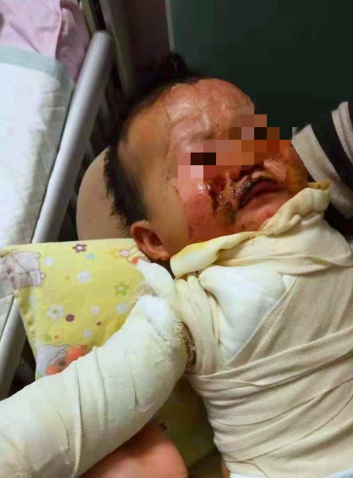 就這樣,滾燙的開水直接澆到小亮身上,把孩子上半身幾乎全燙傷了。很快,小亮臉部、身上就布滿了水泡。隨后,蔣正新急忙趕回家中,趕緊把孩子送到鎮(zhèn)上醫(yī)院,后又緊急轉到張家港第一人民醫(yī)院,在張家港第一人民醫(yī)院進行緊急搶救后,又轉到蘇州大學附屬兒童醫(yī)院進行醫(yī)治。