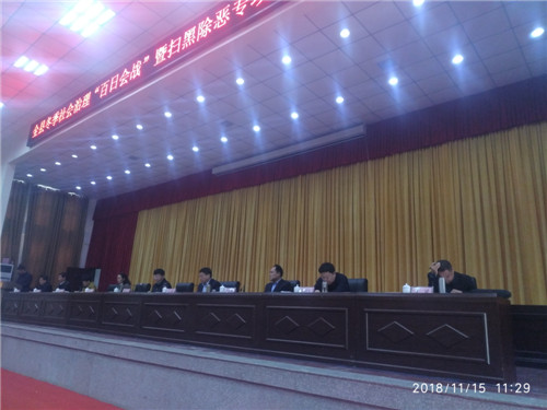 11月15日上午,鹿邑縣在縣委黨校一樓報告廳召開全縣冬季社會治安“百日會戰(zhàn)”暨掃黑除惡專項(xiàng)斗爭推進(jìn)會。會議對全縣冬委社會治理“百日會戰(zhàn)”第一次工作以及全縣掃黑除惡專項(xiàng)斗爭第五次工作進(jìn)行通報;縣領(lǐng)導(dǎo)梁建松、侯自峰、王曉征、何新敏、齊梅英、魯建軍等出席會議??h直各局委、各鄉(xiāng)鎮(zhèn)辦事處主要負(fù)責(zé)人、綜治辦主任和各基層派出所長、司法所長以及來自公安、檢察、法院、司法戰(zhàn)線的干警近千人參加會議。