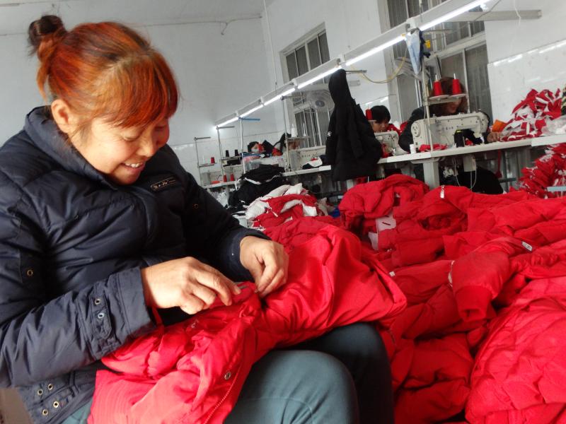 近年來,沈丘縣在打響脫貧攻堅(jiān)戰(zhàn)和鞏固提升脫貧攻堅(jiān)成果工作中,大力發(fā)展家庭手工業(yè),帶動全縣5000余名留守婦女家門口就業(yè),年人均增收2萬元。左圖為11月19日,周營鎮(zhèn)馬營村留守婦女高英在一個(gè)兒童服裝加工點(diǎn)忙著剪線頭。②5 謝辛凌 攝