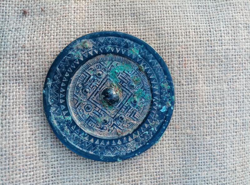 據(jù)悉,這批墓葬因埋藏較淺,均遭到嚴(yán)重破壞,出土文物大部分為器物陶片。從殘片上看主要有陶盆、耳杯、陶案、陶樽、陶罐、陶甕、銅錢、銅鏡等,其中八乳規(guī)矩鏡是這次出土的珍貴文物。