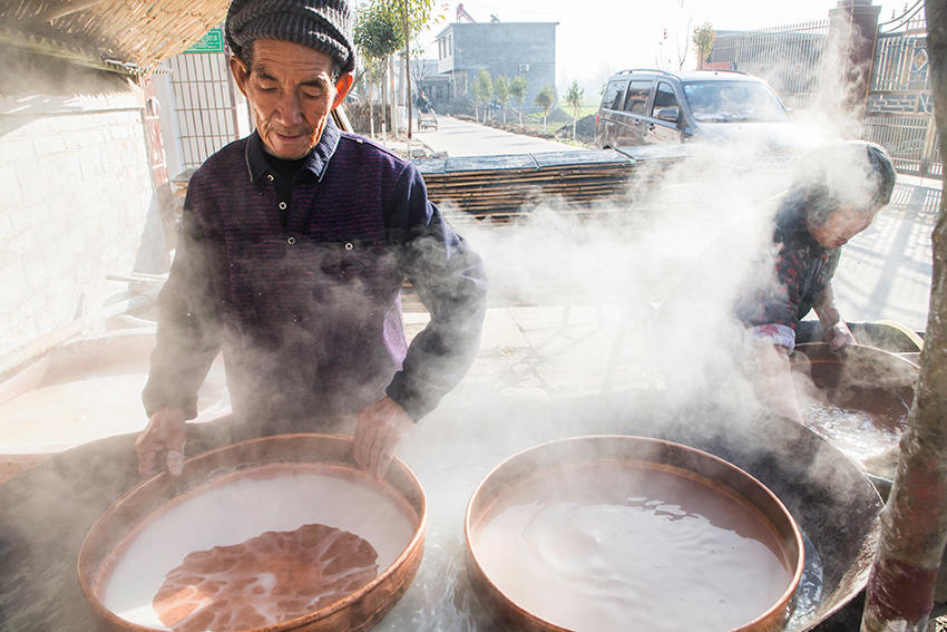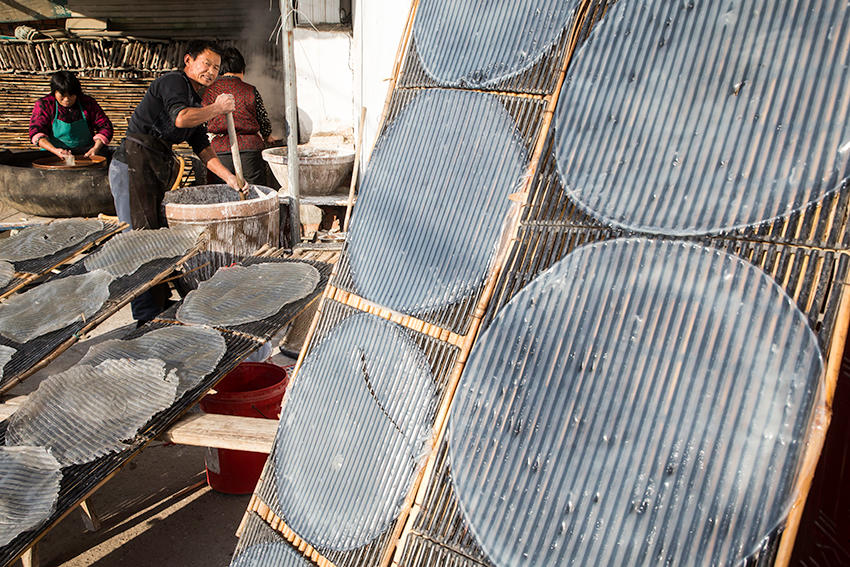 該村地處豫皖兩省交界處,是一個聞名遐邇的粉皮加工專業(yè)村。村里人手工做粉皮已有近百年歷史,從事粉皮加工的村民達500多人。 來到這里,您可以看到手工做粉皮的全過程。(王天定文/圖)